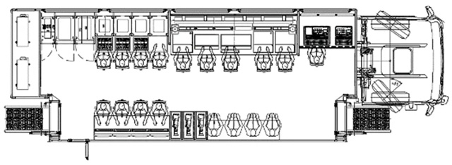 這種類型轉(zhuǎn)播車常配備8~12訊道;作為4K轉(zhuǎn)播車,導(dǎo)演區(qū)通常只能放6塊大屏,且多為單側(cè)拉,側(cè)拉深度一般在1.2~1.5米。當(dāng)然根據(jù)用戶使用需求也有不帶側(cè)拉和雙側(cè)拉的,雙側(cè)拉時要留意超重的風(fēng)險。