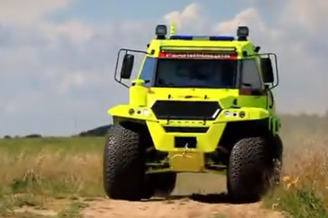 TORSUS PRAETORIAN,捷克共和國制造的大容量高性能車型??梢暂p松的穿越困難地形將病患從人跡罕至的地方運(yùn)送到醫(yī)療機(jī)構(gòu)。大型車長8.4米,總重量是13.4噸。有3個擔(dān)架的放置空間,配備了一個自動舉升的系統(tǒng)。搭載一臺290馬力的發(fā)動機(jī),最大扭矩為1150牛米,最高時(shí)速100公里每小時(shí)。