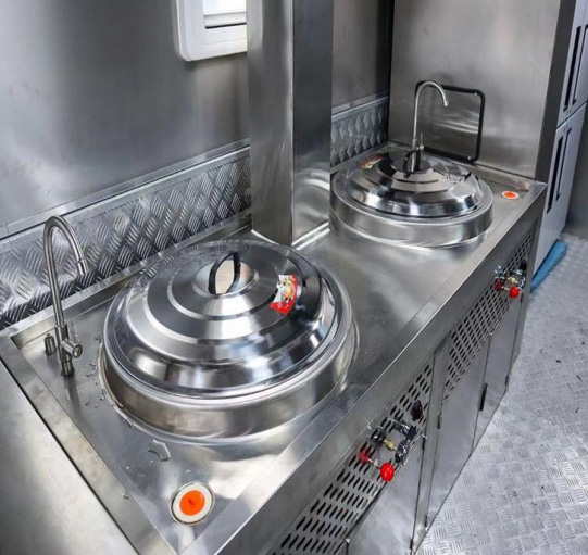 顯浩餐車裝備有主食灶、炒菜灶、燉菜灶、調(diào)理臺、冰柜、抽油煙機(jī)、凈水儲水系統(tǒng)等作業(yè)設(shè)備,可用于野外炊事作業(yè)。餐車相比于餐廳具有投入成本小、運(yùn)營方式靈活等優(yōu)勢。