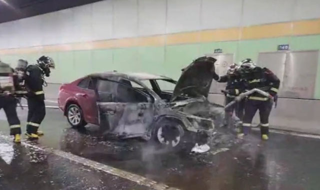 隧道內(nèi)轎車(chē)自燃,情況危急!先導(dǎo)處置車(chē)攜手消防員逆行救援。天氣炎熱,風(fēng)高物燥??諝鉂穸群艿停苋菀装l(fā)生火災(zāi)。這時(shí)突發(fā)緊急情況,隧道的一輛小轎車(chē)發(fā)生了火情,自燃了。時(shí)間緊迫先導(dǎo)處置車(chē)第一時(shí)間趕到現(xiàn)場(chǎng)進(jìn)行處置。因?yàn)樗淼辣容^狹窄,又是下班的完高峰期。自燃導(dǎo)致了高速車(chē)輛大排長(zhǎng)龍。消防車(chē)比較大開(kāi)到隧道口就沒(méi)辦法往前開(kāi)了。為了讓消防車(chē)盡快到達(dá)現(xiàn)場(chǎng)滅火。先導(dǎo)處置車(chē)的人員在指揮交通秩序。搭載消防隊(duì)員進(jìn)隧道滅火。很快現(xiàn)場(chǎng)明火被撲滅,自燃車(chē)輛被拖離。經(jīng)多先導(dǎo)處置車(chē)部門(mén)聯(lián)動(dòng)處置,快速消除車(chē)輛燃爆險(xiǎn)情,交通恢復(fù)正常。